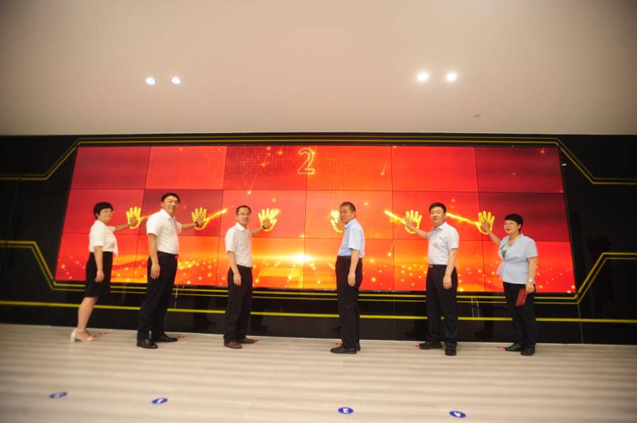 25日下午,在威海市红色物业党建基地,住建部房地产市场监管司物业服务市场监管处处长陈勇,山东省住房和城乡建设厅党组成员、副厅长周善东,威海市副市长邓勇、大众报业集团(大众日报社)社委委员、齐鲁晚报·齐鲁壹点党总支书记、总经理张天卫,山东省住房和城乡建设厅物业管理处处长汤群、威海市住房和城乡建设局党组书记、局长李瑞玲共同触摸大屏启动了塑优势、创品牌——“齐鲁红色物业”建设调研活动。