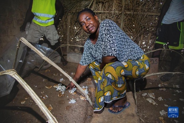 在中非共和国首都班吉附近的大马拉地区,盛夏7月的午后时分,太阳热辣,一间约6平方米、四壁用棕榈叶遮阴的菇棚里却幽暗清凉。棚内有两个长2米、宽1米的畦床,其间星罗棋布地点缀着刚萌出的数十簇平菇。40岁的法蒂玛蹲在土埂上,用手拨弄着饱满的灰白色菌盖,脸上难掩丰收的喜悦。
