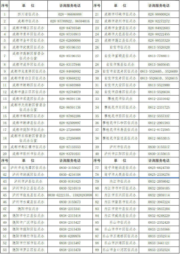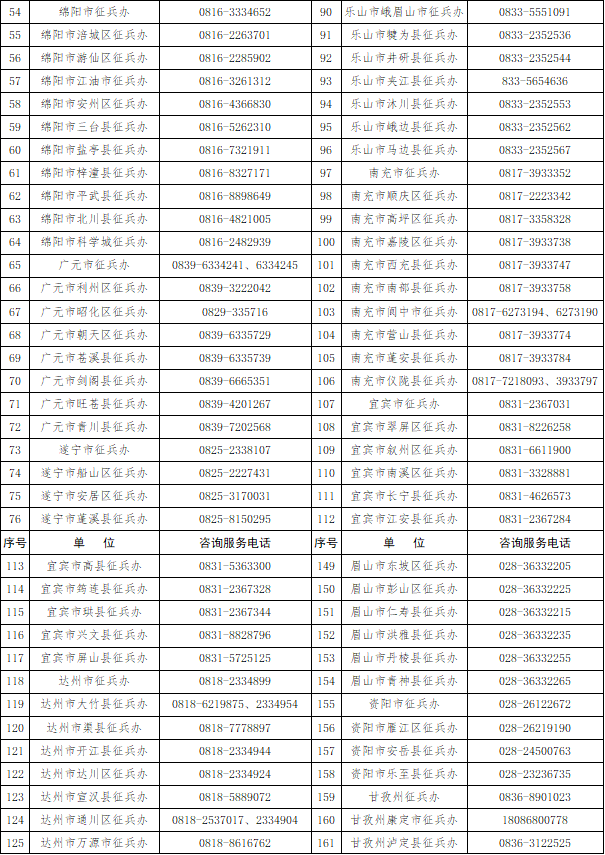 如果还有疑问,可以直接电话咨询全省各级征兵办公室。