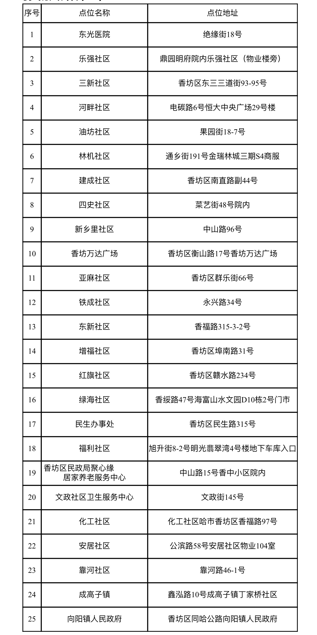 香坊区共享轮椅投放点位(新投放点位)