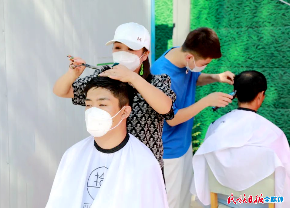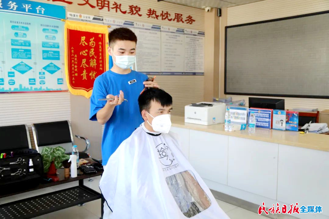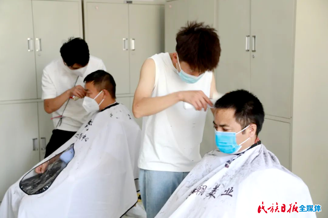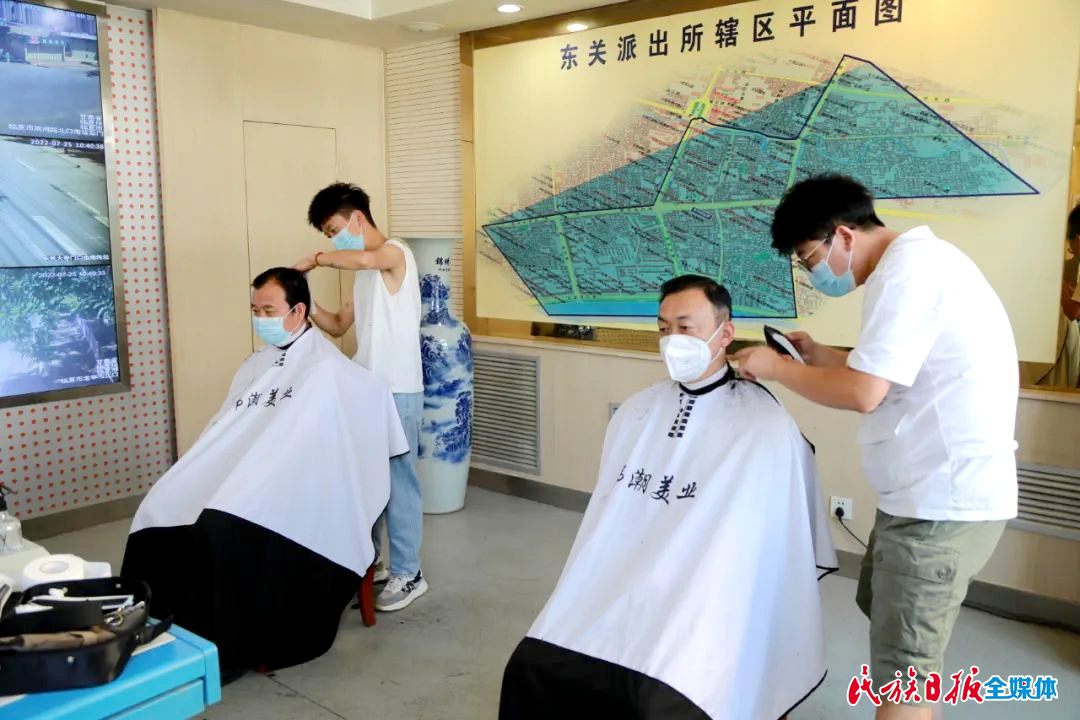 7月25日至26日,临夏市“韩潮美业”、“梦梵发型”、“拾光形象设计沙龙”、“米兰尚都”等理发店的志愿者理发师来到临夏市公安局各派出所、各执勤点为一线民辅警义剪。