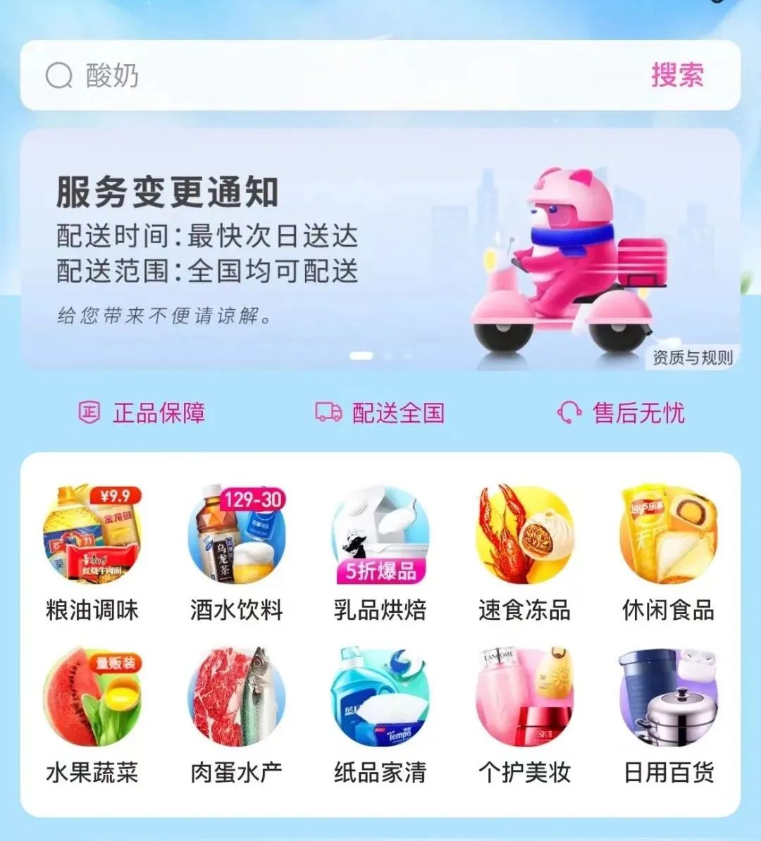 7月28日,多名消费者发现,每日优鲜首页出现服务变更通知,由原本支持30分达改为支持次日达。修改定位至北京、天津、上海等城市均发现有相同的置顶公告。