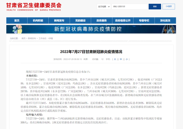 现将7月27日0—24时甘肃省新冠肺炎疫情信息公布如下: