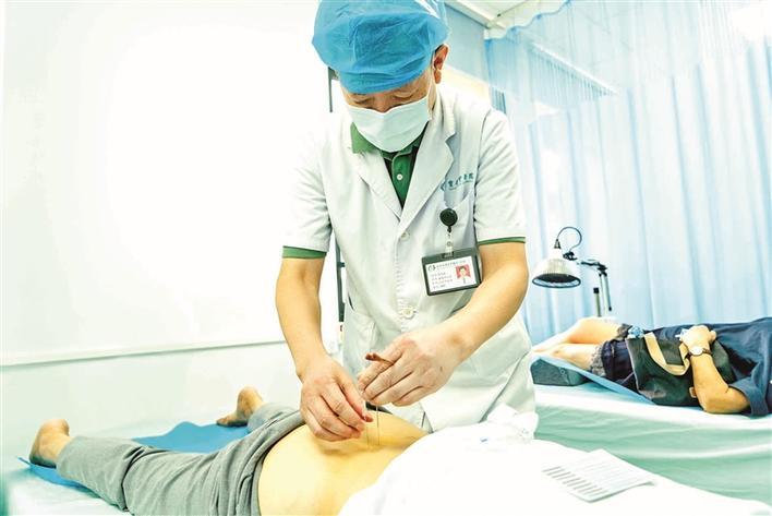 在这里,老戴得到了康复科极具特色的中西医综合康复治疗,医生为其实施了“祛瘀生新”针法、推拿治疗、刺络拔罐疗法、辨证口服中药汤剂治疗,配合物理治疗、现代康复治疗。经过一段时间的有效治疗,老戴腰痛的疼痛感渐渐消失,晚上睡眠质量也越来越好了。“针对难治性颈椎病、腰椎间盘突出症等疾病,我们充分发挥中医特色优势来治疗,可以使90%以上患者免除手术之苦。”金远林介绍道。