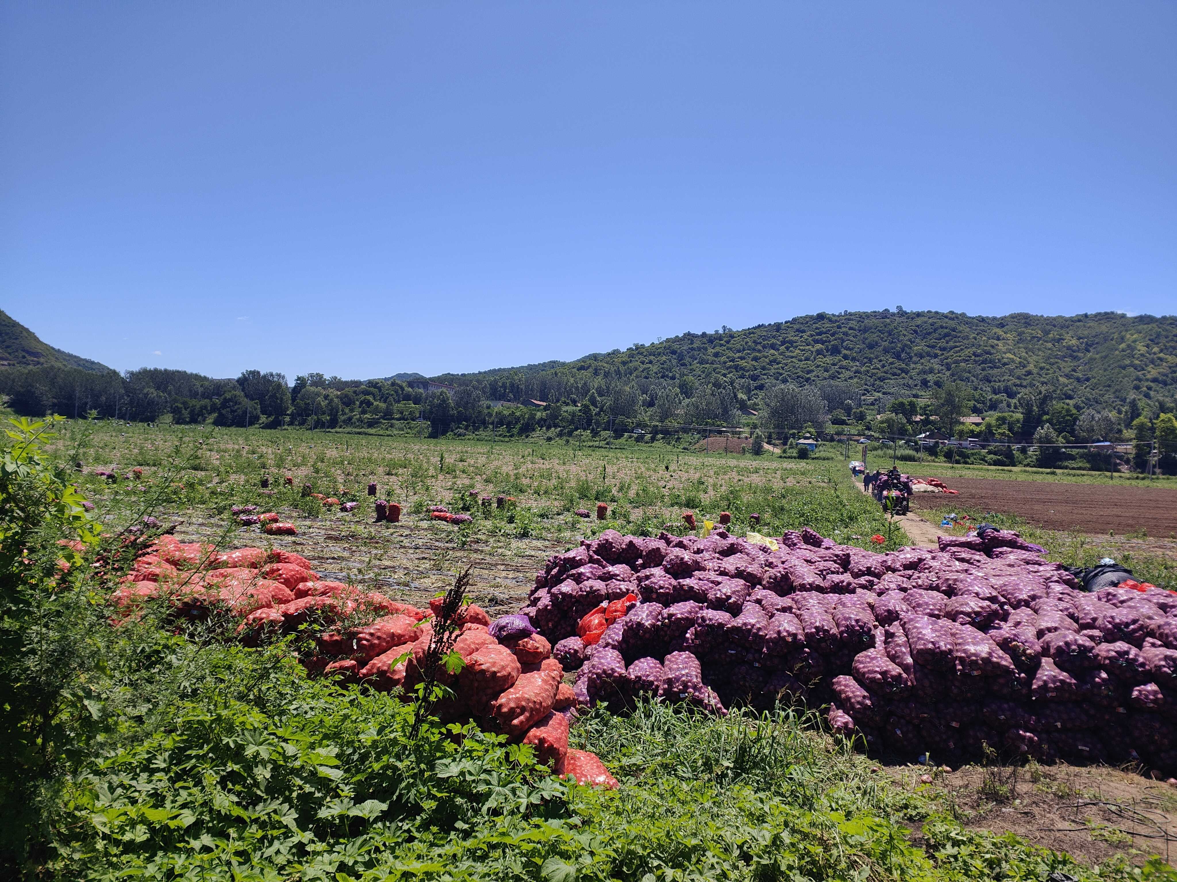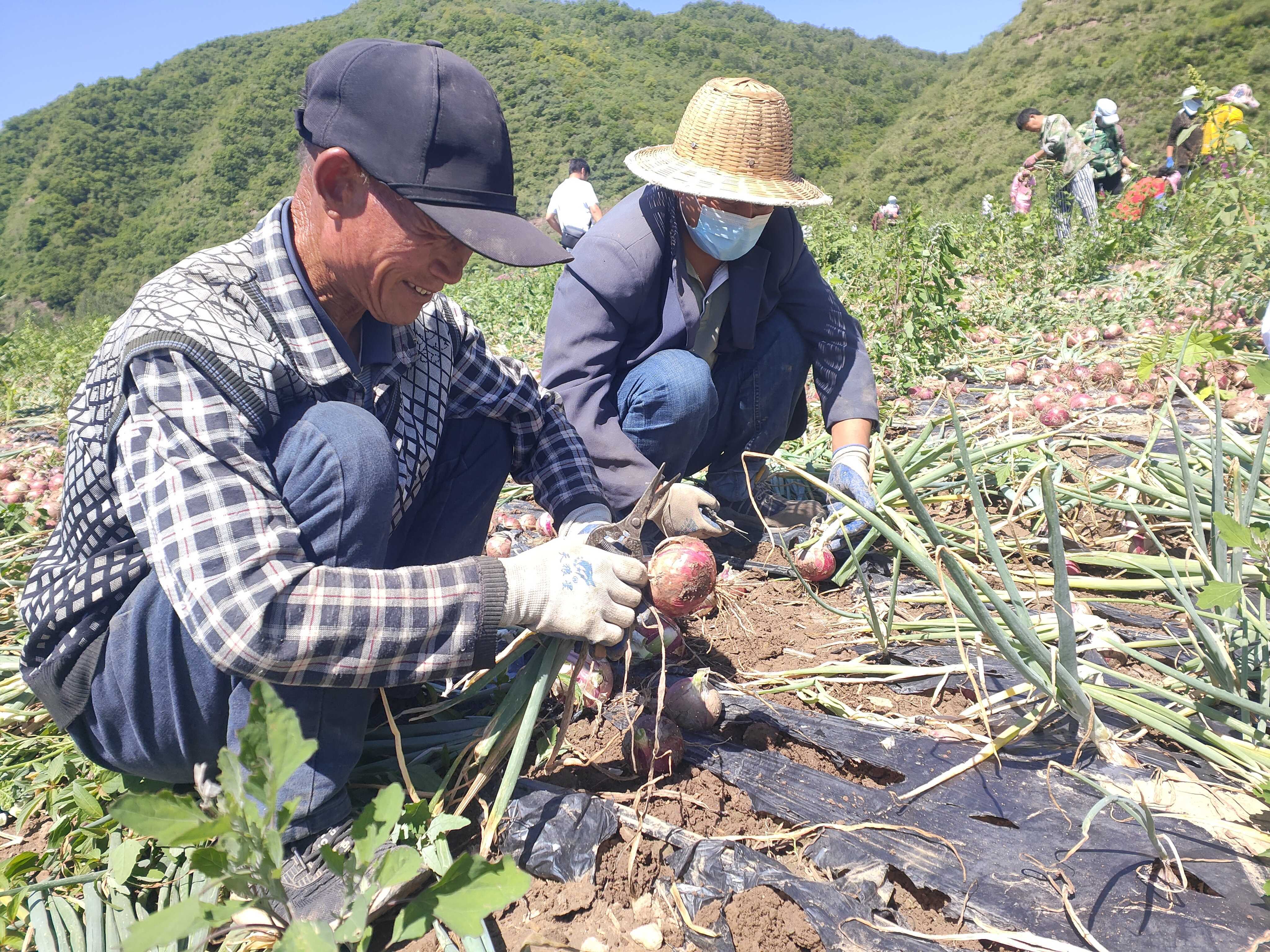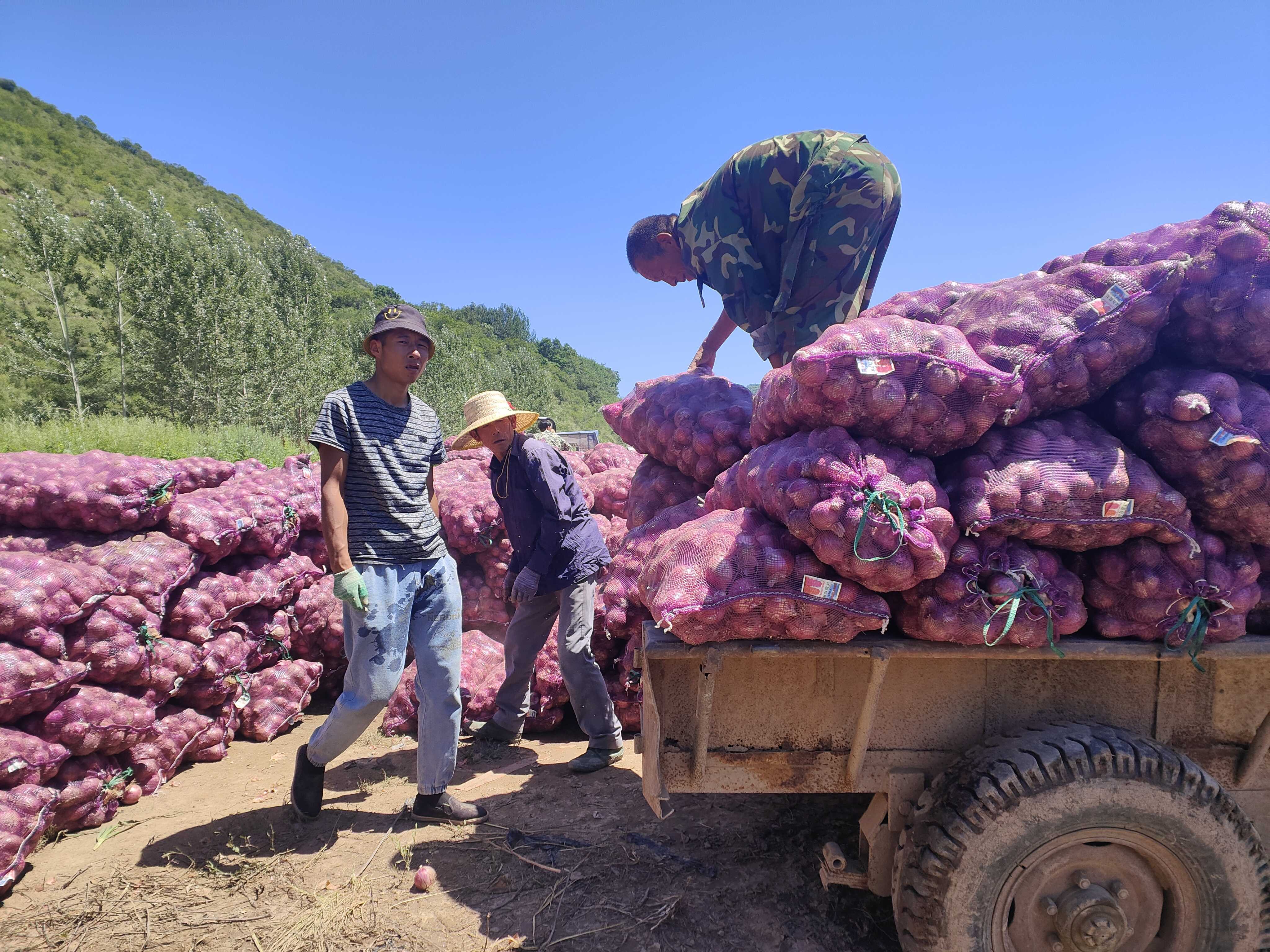 盛夏时节,走进旬邑县马栏镇转角村的千亩洋葱种植基地,一个个圆滚滚的洋葱沐浴在山间田野,一袋袋洋葱打包码放正待运输,