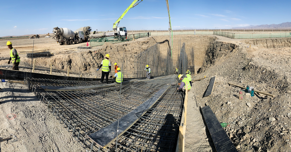 图为:在建的中鸿控股集团高纯石英材料及尾矿综合利用产业园建设项目施工现场。