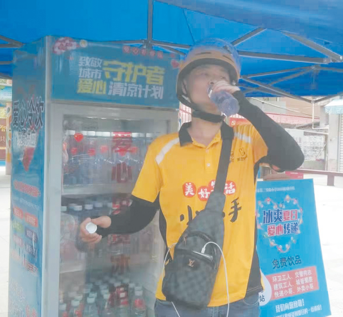 昨日,莆田市气温高达35摄氏度。烈日下,送完外卖的张先生来到莆田市第二实验幼儿园门口的“爱心冰柜”投放处,取出一瓶水痛快畅饮。“这么热的天,带的凉茶都变成了热茶,这冰凉的矿泉水真解渴啊!”说起这个爱心供水点,小张和附近的环卫工人都止不住地赞叹,他们说:“我们喝到的是爱心矿泉水,从中感受到的是这座城市对我们的关心。”