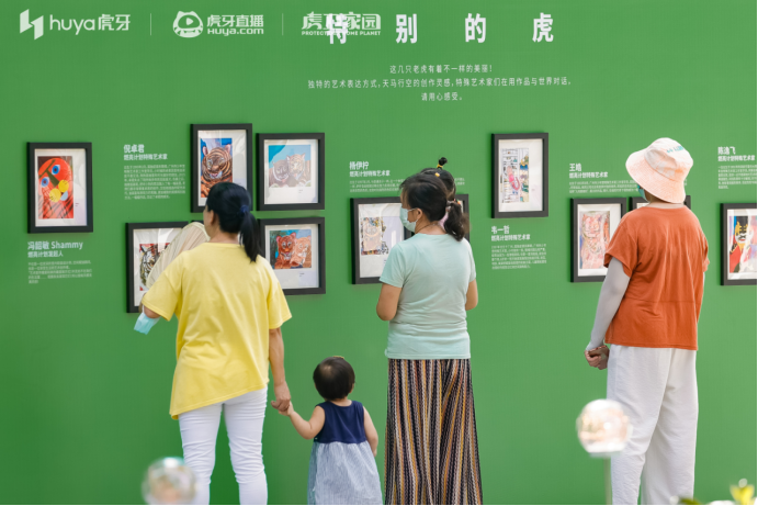 7月27日,虎牙联合中国野生动物保护协会(CWCA)、国际野生物贸易研究组织(TRAFFIC)、国际爱护动物基金会(IFAW)为征集到的优秀环保画作举办了首场展出,并邀请到虎牙人气主播“鲨鱼哟”担任虎卫家园公益画展推广大使,与现场观众一起参与了帐篷雨伞彩绘、签到墙涂鸦等互动创作。
