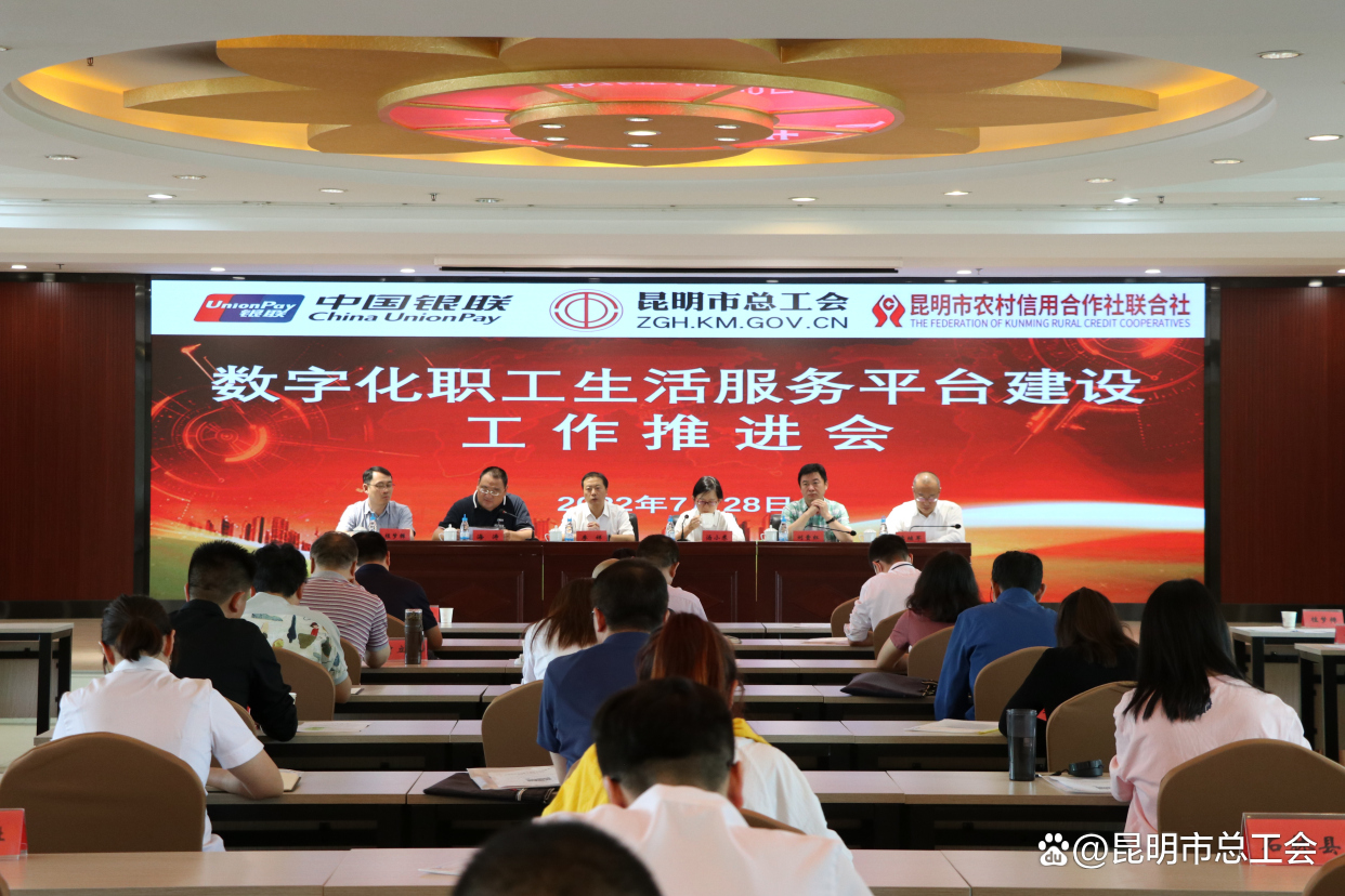 7月28日,昆明市总工会联合中国银联、昆明市农村信用合作联合社在昆明市职工之家召开数字化职工生活服务平台建设工作推进会。会上,昆明市总工会宣布发放“数字工惠卡”,并就发卡卡种、小程序开发、如何引导职工办卡用卡等数字化职工生活服务平台相关问题进行答疑。