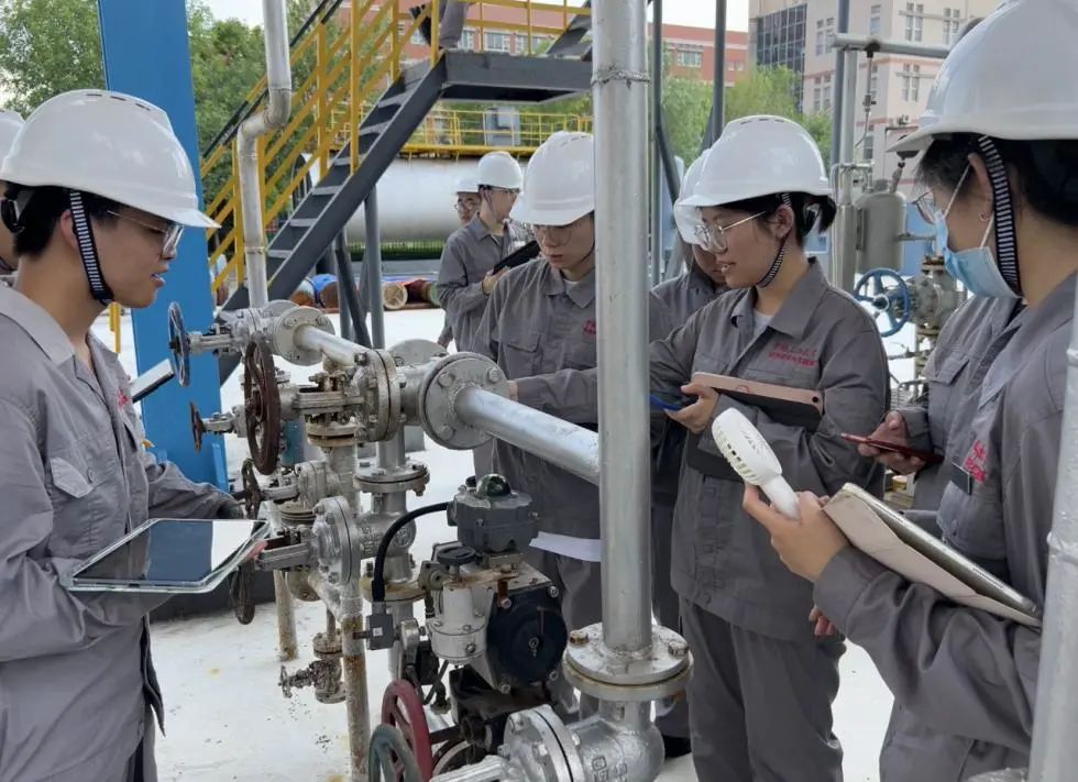 安全工程专业2019级学生在20天的实习中,分别在青岛和东营的中国石油大学(华东)石油工业训练中心进行工业流程读图能力学习、风险分析方法初步学习、实地装置专业实习。为提高实习质量和效果,安全工程专业实习采用“专业教师-现场师傅”双师制指导,专业教师全程进行专业理论讲授和现场应用指导,实习基地师傅负责现场设备、工艺介绍。