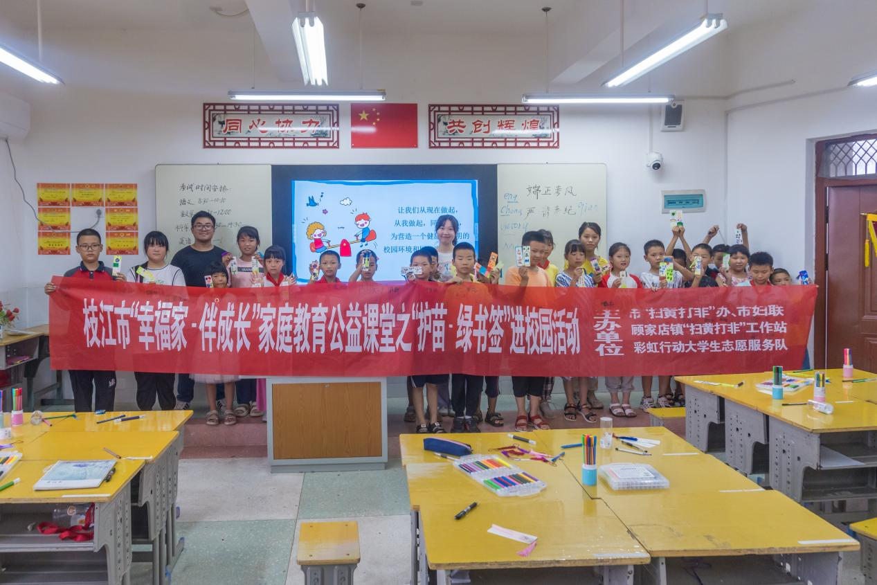 (通讯员 桓晨月 冯靖炜)近日,枝江市“扫黄打非”办、市妇联、顾家店镇“扫黄打非”站结合“彩虹行动·七彩假期·希望家园·守护童年”关爱留守儿童暑期公益托管班活动,在顾家店小学开展“护苗”进校园活动。