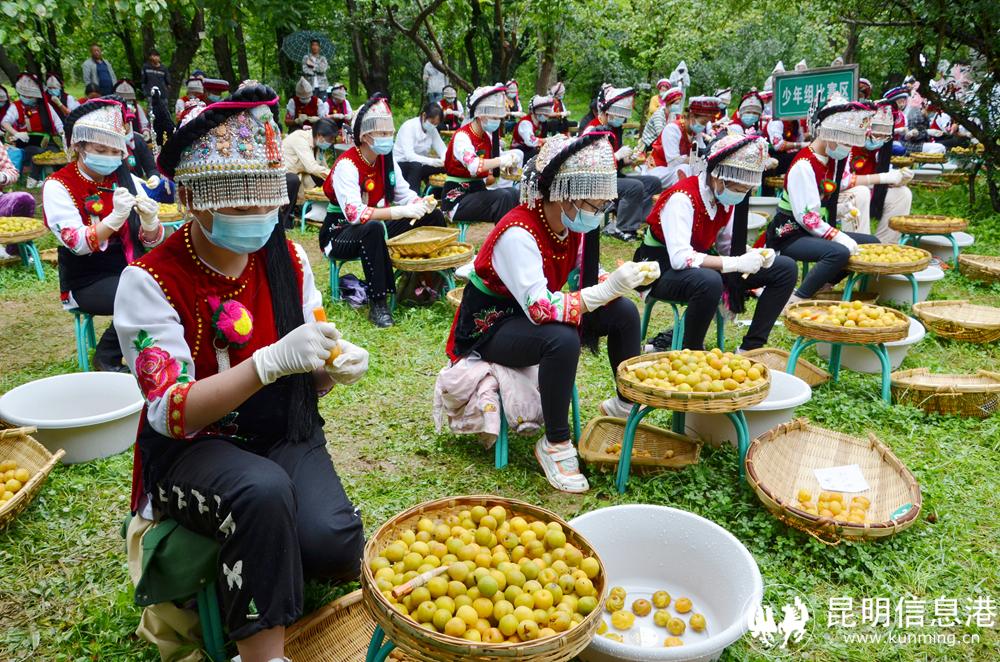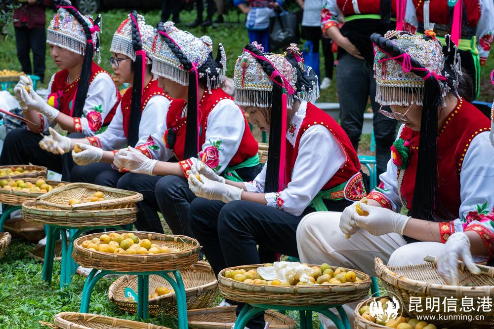 小小青梅上指尖,巧手翻作玉菊兰。一大早,茈碧湖畔的世外梨园村格外热闹,来自全县梅农代表百人,身着民族盛装,分坐在古梨树下,少年、青年、中年三个组同步竞技。选手们聚精会神地雕刻、挖核、压花,小小青梅在他们的巧手下变成了雕梅,印证了古人笔下“小小青梅落指尖,巧手翻作玉菊兰”指尖生花的技艺。雕梅技能以速度和质量两项为评选内容,30分钟内雕的雕梅数量多少确定名次,质量上以造型、刀数、破损、梅核、着装五个方面进行评分。经过激烈的角逐,经过激烈的角逐,评选出了特等奖1名、一等奖11名、二等奖22名、三等奖22名、优秀奖44名。