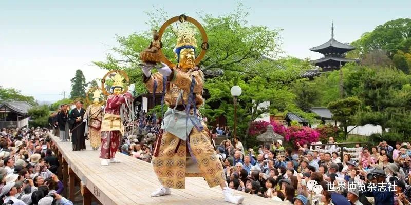 2019年3月5日在东京公演的《天王寺舞乐》。舞蹈部分的“舞乐”、音乐部分的“管弦”和声乐部分的“歌谣”统称为“雅乐”。