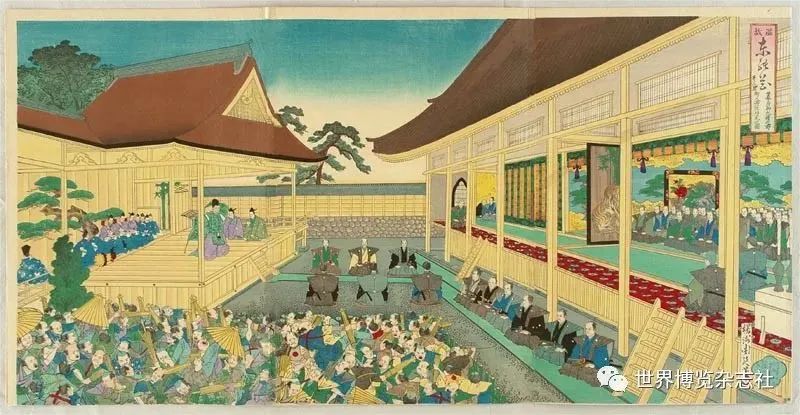 散乐的“散”字逐渐被日语近似音“猿”字借代,而散乐中的滑稽成分也与猴戏相关联,所以,散乐在后来被称为“猿乐”。1868年明治维新后日本新政府学习西方整顿文艺,上流社会要进剧场看戏,这才发现用猿乐招待外国使节时出现“Monkey”字样有辱国体。因此,下令用“能乐”这个词替换“猿乐”。实际上,“能乐”这个词到了近代才开始被广泛使用。