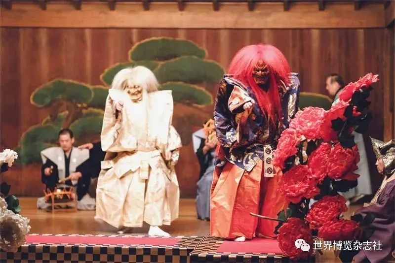 如此高频率地、发达地、系统地使用面具是能戏的特色。能面,作为舞台表演不可或缺的道具,是艺人的演技秘匙,甚至能面有更强大的精神能量。没有声、光、电的舞台美术,没有麦克风的扩音,只有4种乐器的伴奏和伴唱队,气氛肃穆、行动迟缓的能,仍保持着戏剧发源时的“娱神”功能与风格。能面是踏入神灵境界的“凭据”,几百年来受到从业者的敬畏与尊崇。一副能面佳品,不仅因其造型美、年代古老而成为价值连城的珍宝,更因其幽深的面容和色彩背后,重叠地寄宿着戏剧人物的魂魄、木雕名匠的传奇、俳优艺术生涯之理想,从而显得神秘而厚重。瞬间消逝的歌袖舞袂和穿越时空的情感,始终复刻在能面似是而非的表情中。它是能乐传承600多年艺术精神的本质,也是日本传统文化的标志。