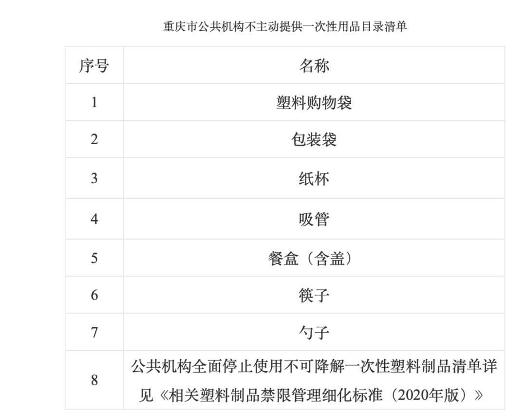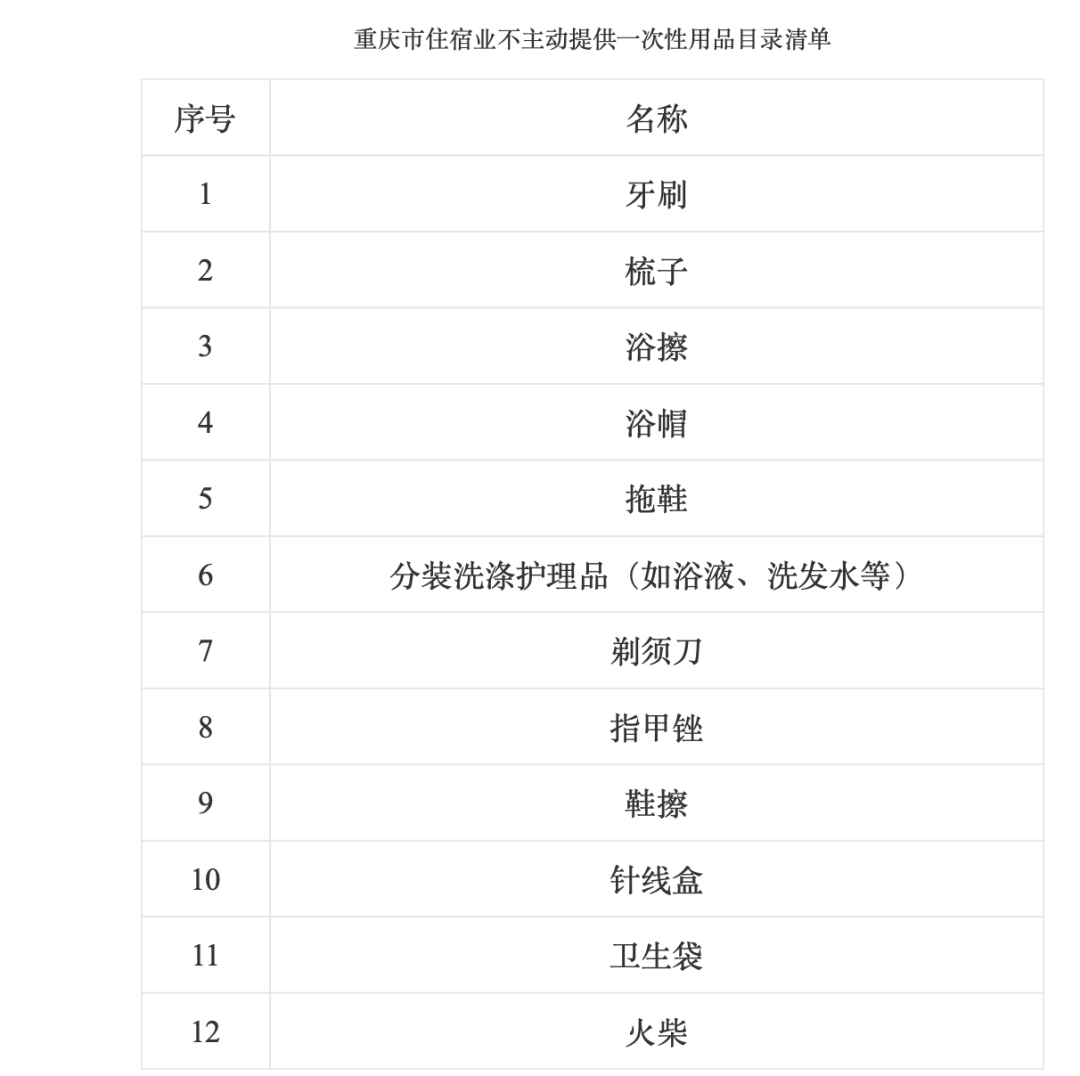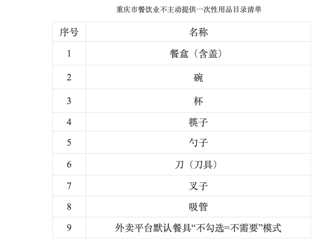 重庆市餐饮业不主动提供一次性用品目录清单。