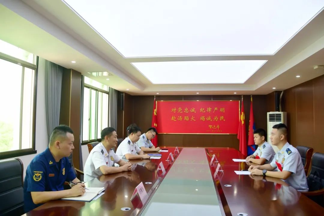 7月29日上午,台州市消防救援支队召开援建干部座谈会,欢送援藏干部付鹏和援甘干部崔晨晨,沈梁支队长、政治部刘性未主任出席会议,机关相关科室人员参加。