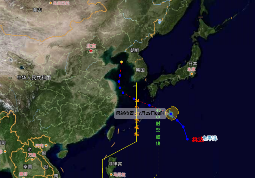 预计,“桑达”将以每小时40-50公里的速度向西偏北方向快速移动,强度变化不大,将于29日夜间移入东海海域,30日夜间逐渐转向偏北方向移动,之后强度逐渐减弱。7月29日-8月1日,我国东海北部、黄海南部有6-8级大风,台风中心经过的附近海面有9级、阵风10级大风。