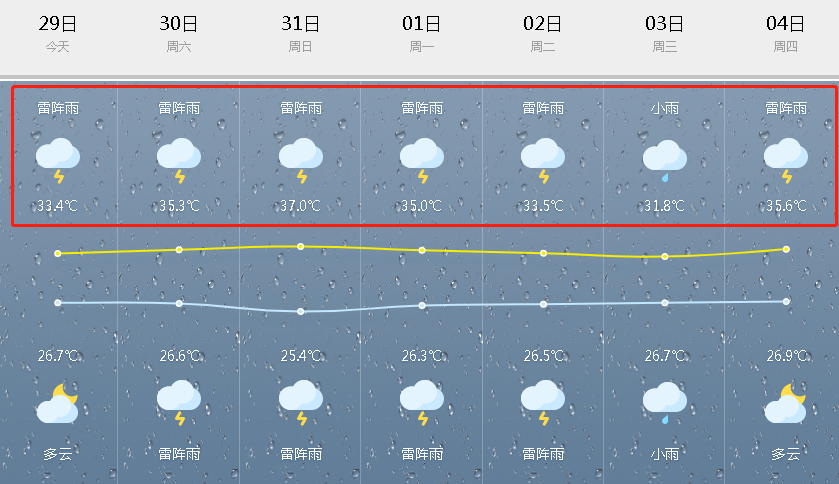 今天、明天多云,午后部分地区阴有阵雨或雷雨;后天多云,午后局部阴有阵雨或雷雨。今天白天最高温度:沿海地区33~35度,其它地区35~37度;明天早晨最低温度:24~26度。沿海海面:东北到东风5-6级阵风7级。