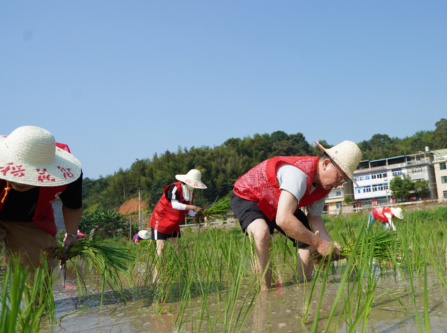 7月25日,南平市烟草专卖局部分干部职工前往延平区赤门乡赤门村,由18位党员志愿者带头,把认领的6亩撂荒地种上水稻,盘活沉睡资源,激发农民群众种粮的积极性。