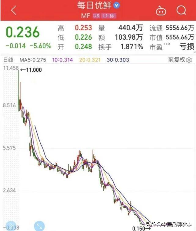 自今年4月19日后,每日优鲜的股价就长期持续处于1美元以下,最新财务数据还停留在2021年第三季度,2021年Q3,每日优鲜净亏损为9.74亿元。美东时间7月27日收盘,每日优鲜股价已跌至0.236美元/股,不足发行价的2%,总市值仅5545万美元。根据纳斯达克规定,上市公司股价若连续30个交易日低于1美元就会收到退市警告,每日优鲜离退市还会远吗?