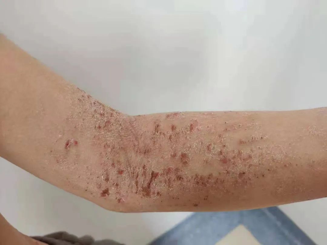 多为局限性干燥性皮炎损害、红斑或丘疹。如果处理不得当,皮肤会像树皮一样粗糙肥厚。
