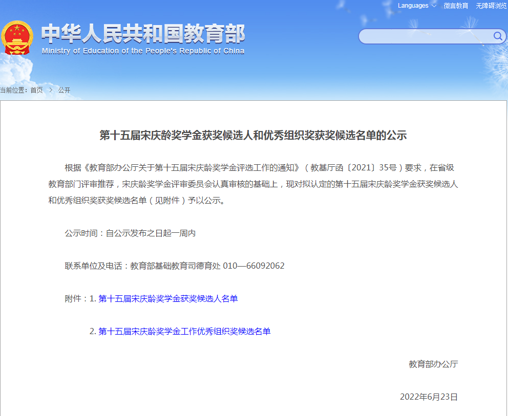 教育部网站公示了