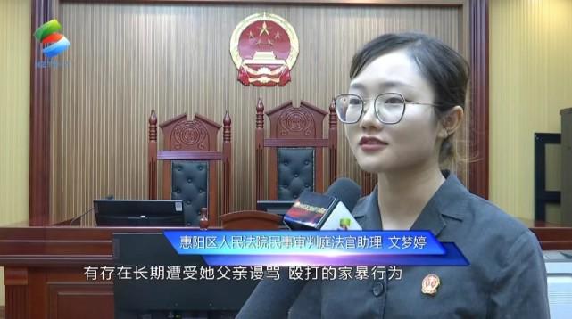 惠阳区人民法院民事审判庭法官助理 文梦婷:她的母亲,也就是说这个妇女有存在长期遭受她父亲谩骂、殴打的家暴行为。最近一次发生在2022年的6月份,在这个妇女孙子的满月酒上,加害人存在谩骂以及打了这个妇女两巴掌这样一个殴打行为,跟她儿子也发生了肢体冲突。