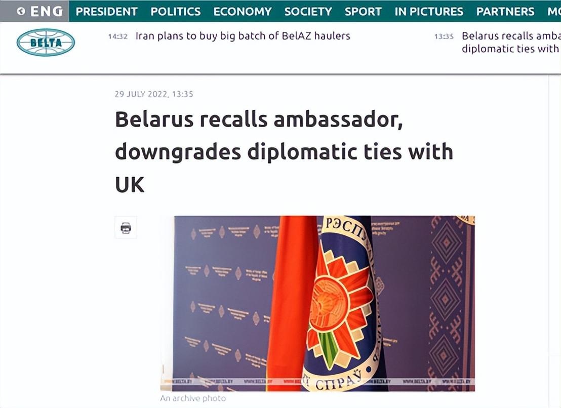 白俄罗斯外交部宣布:召回驻英大使,决定将两国外交关系降级