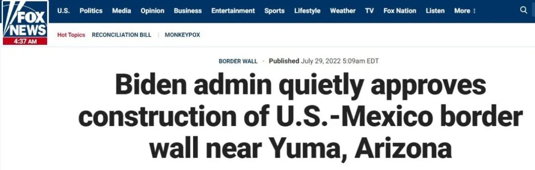 福克斯新闻网说,过去,拜登曾多次批评前总统特朗普及其修建边境墙的计划和相关移民政策,将之称为“排外”和“种族主义”行为。在2020年8月的一次采访中,拜登说:“在我的总统任期内,不会再修一英尺的墙。”他上任后也停止了所有新的边境墙建设,并要求国会取消对边境墙建设的资助。