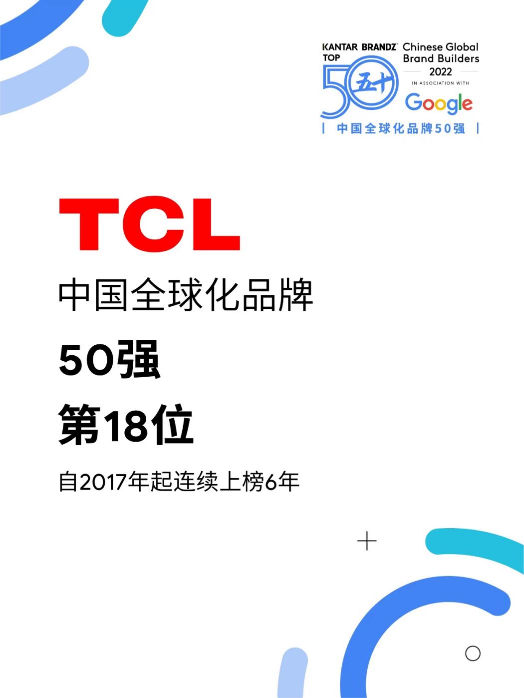 据了解,这是双方连续第六年携手发布《凯度BrandZ™中国全球化品牌》研究报告,该报告涵盖了11个海外市场消费者对中国品牌的认知和评价,超过100万海外消费者参与调查。得益于TCL科技与TCL实业二者领先的市场表现,TCL品牌的全球影响力持续上升。
