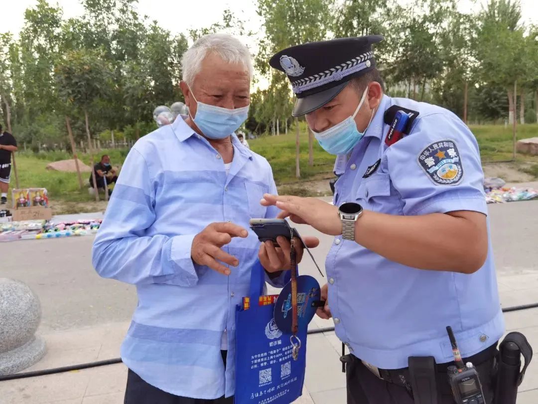 “大哥大姐你们好,你们的手机安装反诈APP了吗?如果没有,请扫二维码尽快安装并使用。”民警耐心地走访询问来往居民群众和游客,并向他们送上印有反诈APP二维码的扇子、手提袋、气球等小礼品。