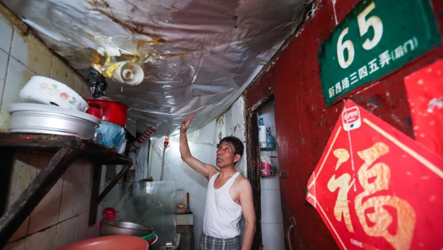 李泰华家的房屋由于年代久远而下陷,比门外的弄堂低20多厘米。“每到雨天,弄堂里的水就呼呼地倒灌进房间。”房子发霉,空气差,时间长了人就患上哮喘,直到现在,李泰华仍一到春天就发病。