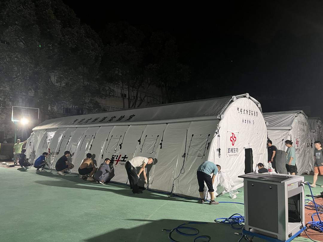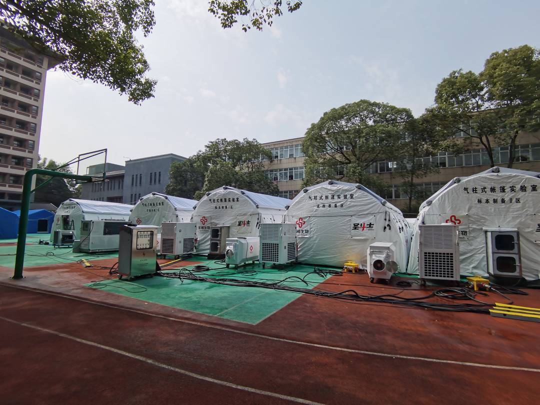 7月27日以来,冒着高温酷暑,不分白天黑夜,四川省人民医院工作人员连续作战,在短时间内迅速完成采购、选址、设备安装调试等工作,建成由6台气膜组成的气膜方舱实验室,为应对疫情提供了强有力保障。