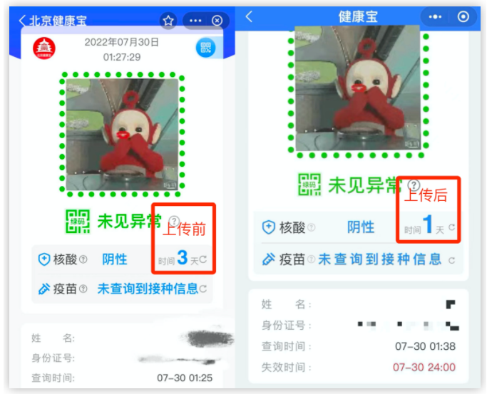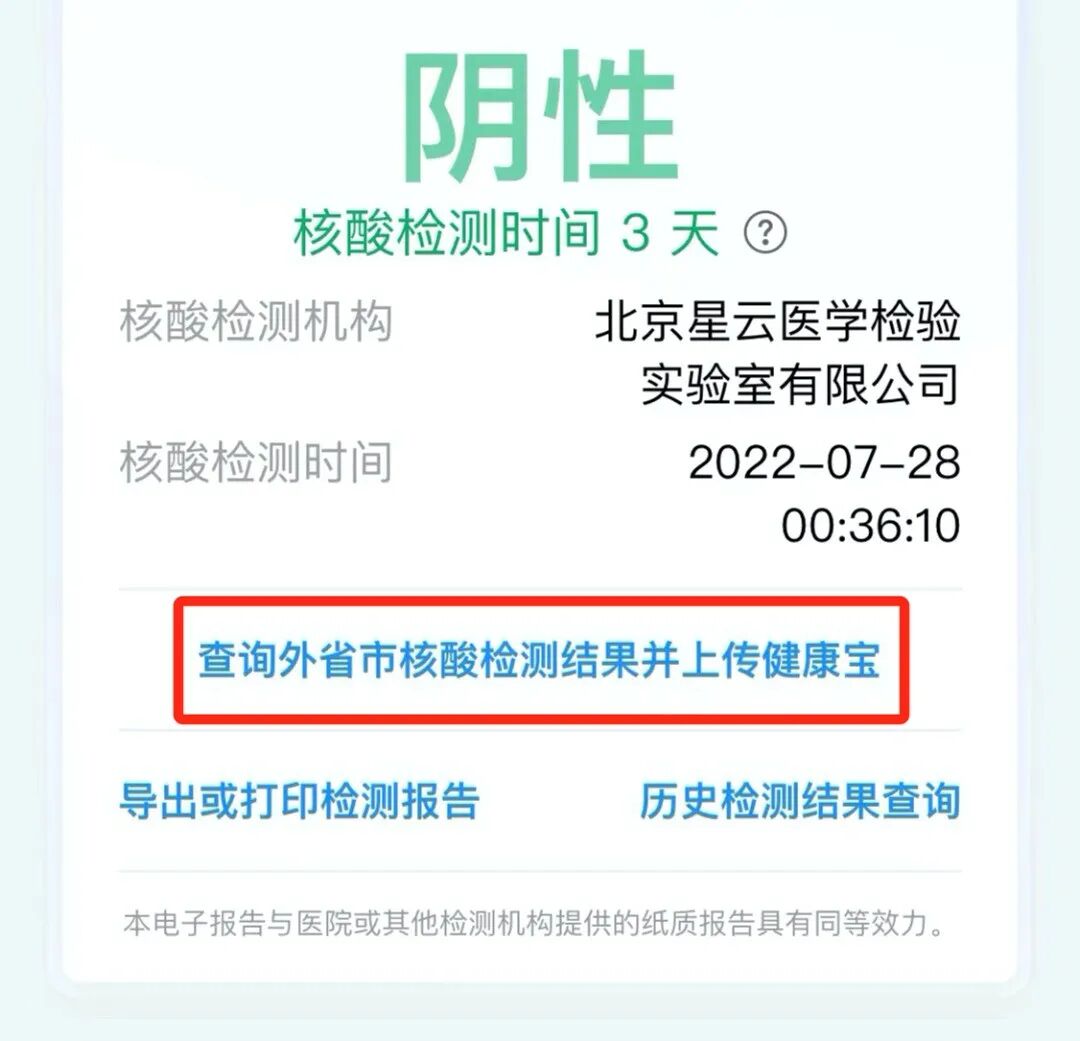 29日,国务院联防联控机制印发通知,要求进一步推动新冠病毒核酸检测结果全国互认,不同渠道展示的核酸检测结果具有同等效力。目前,北京健康宝可查询外省市核酸检测结果并上传至健康宝。