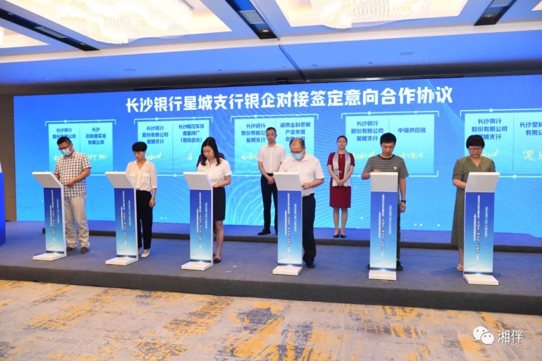 7月15日,2022年长沙县干部联企业“送政策、解难题、优服务”行动之银企共建暨银企对接签约仪式在星沙举行,湖南星沙农村商业银行、长沙银行星城支行代表分别与相关企业签订意向合作。 湖南日报全媒体记者 田超 摄