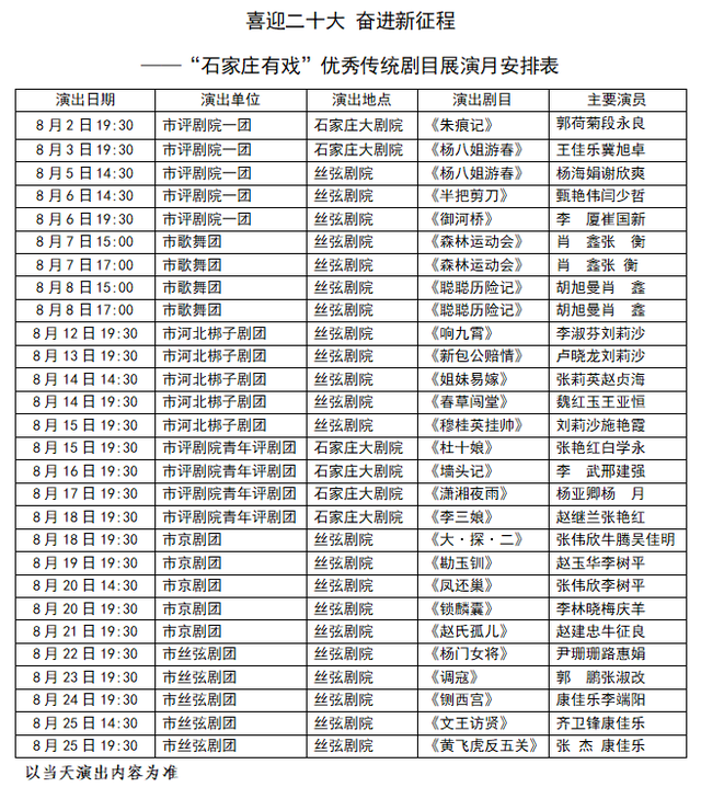 由石家庄市文化广电和旅游局、石家庄市艺术研究院主办的喜迎二十大、奋进新征程——“石家庄有戏”优秀传统剧目展演,将于8月2日至8月25日在石家庄大剧院和石家庄丝弦剧院举办,28场精彩演出将陆续与观众见面。