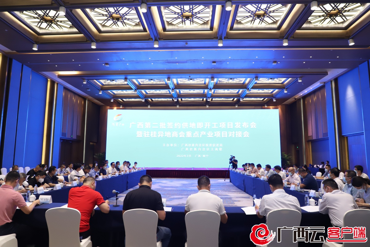 7月29日,广西第二批签约供地即开工项目发布会暨广西驻桂异地商会重点产业项目对接会在南宁举行。自治区投促局发布第二批110个签约供地即开工招商项目,诚邀海内外投资者来桂投资兴业。