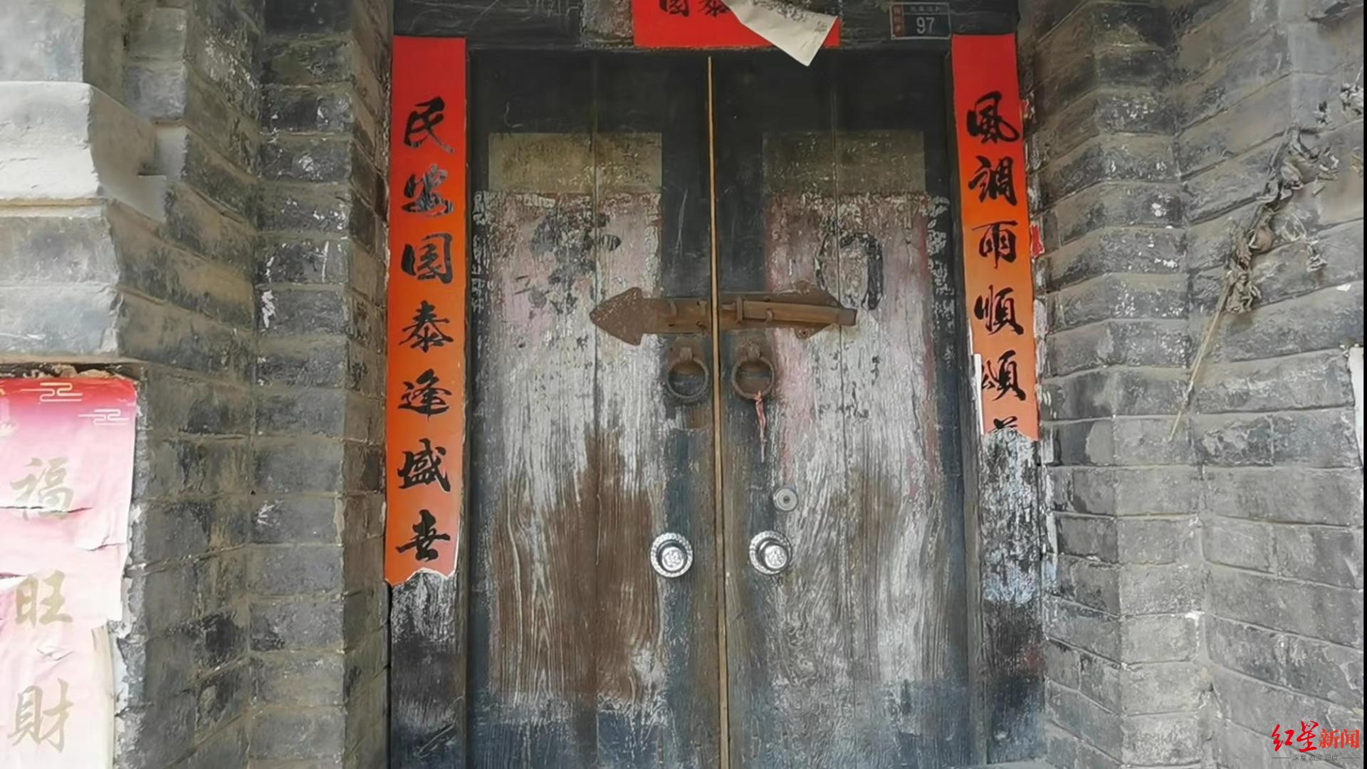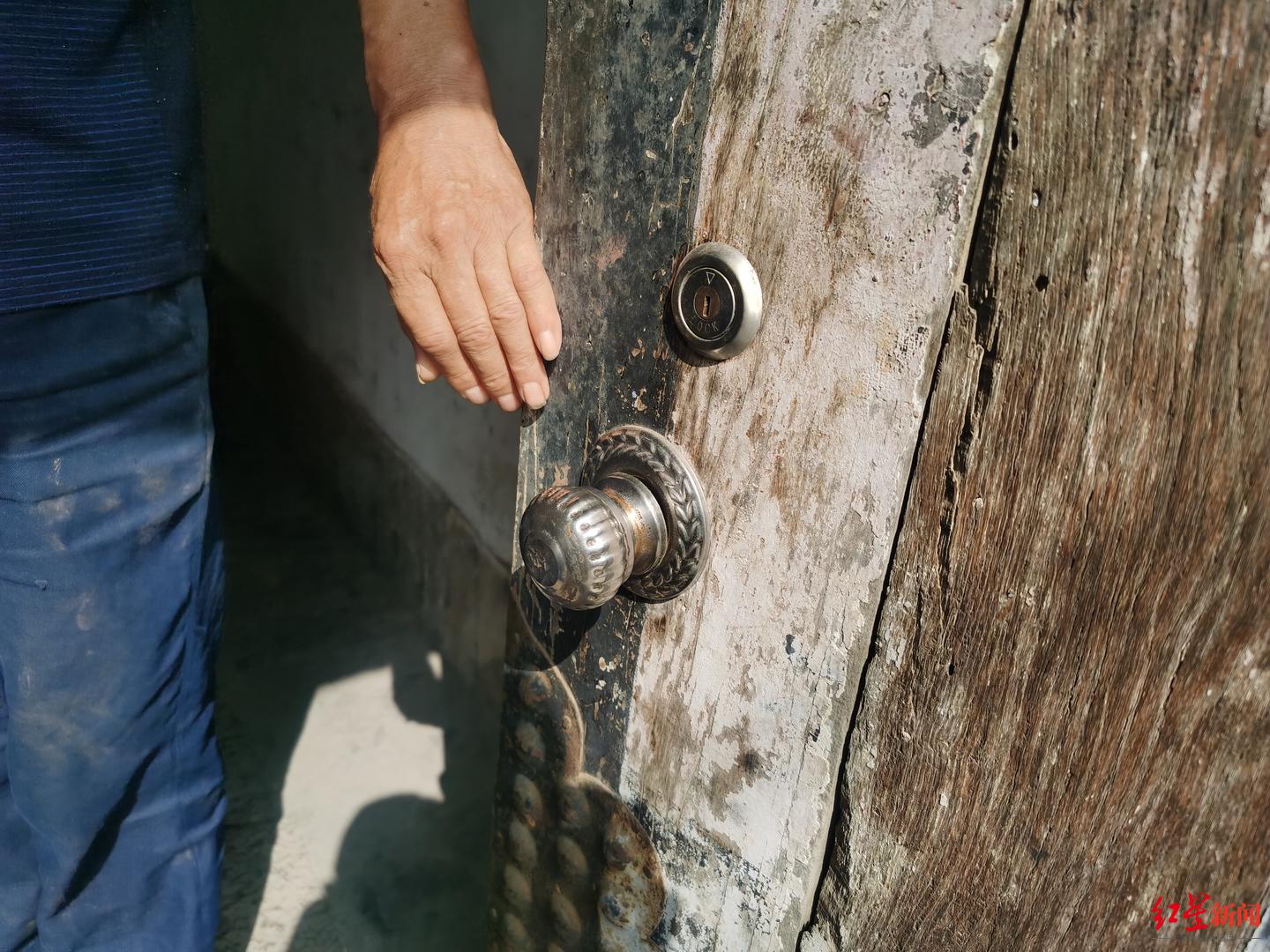 在三轮摩托旁,老房子的大门紧闭着,门内安安静静。