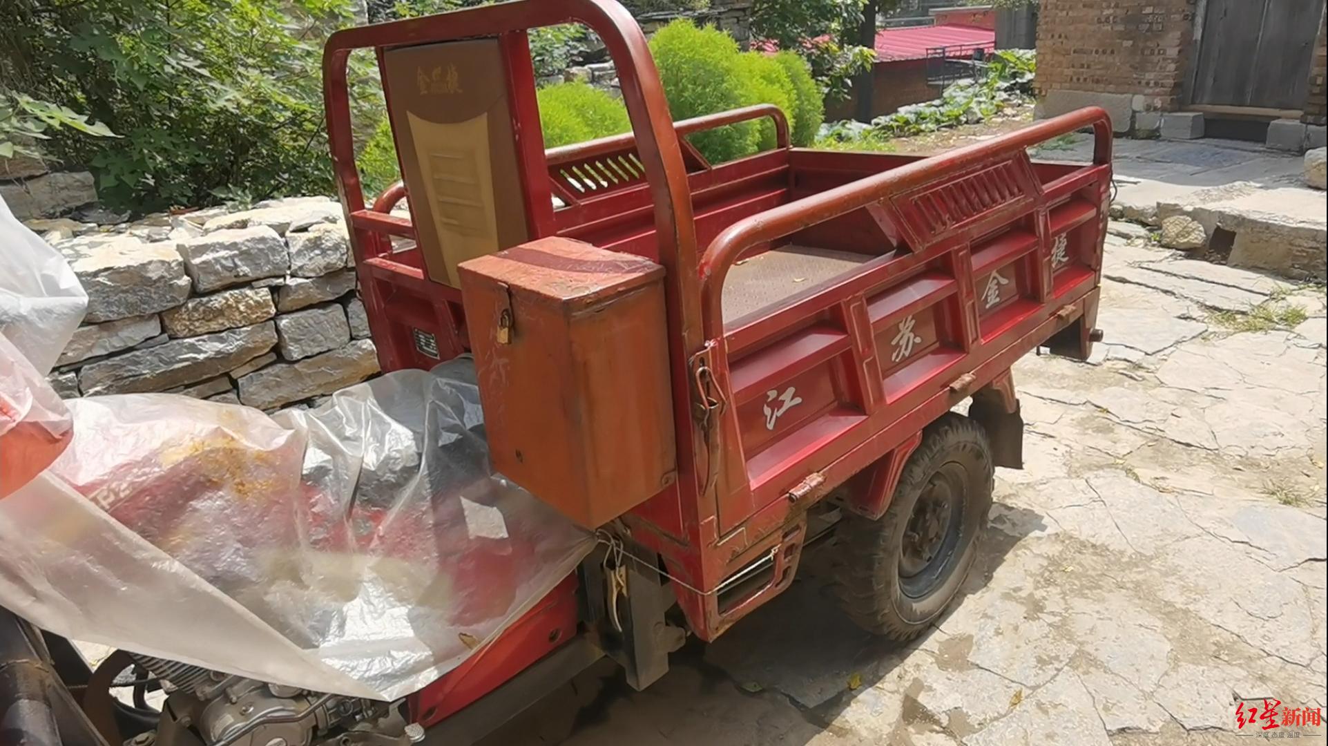 这几位老人称,因为视频的原因,几天前“歪子”和老母亲就被女儿宁宁接到了县城里居住,至于什么时候回来,他们也不清楚。从几位老人乘凉的墙根旁,一条小路过去,就能看见视频里“二舅”的那辆红色三轮摩托,车头蒙着塑料布,走近了还有淡淡的汽油味。