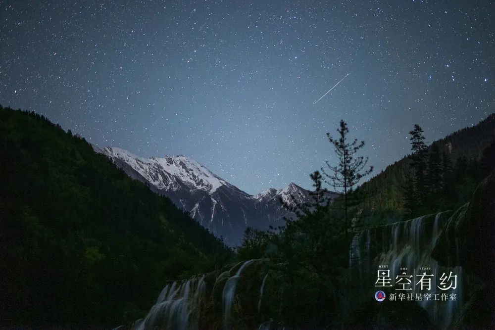 这是重庆市天文爱好者戴建峰2022年5月5日在四川九寨沟拍摄的宝瓶座η流星雨。(本人供图)