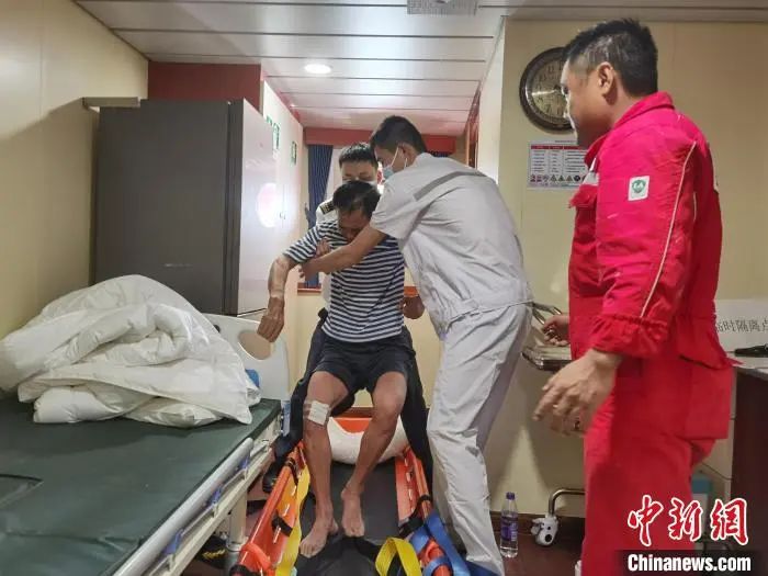 资料图:“福景001”轮一名甲板工获救。广东省海上搜救中心供图