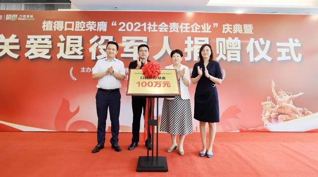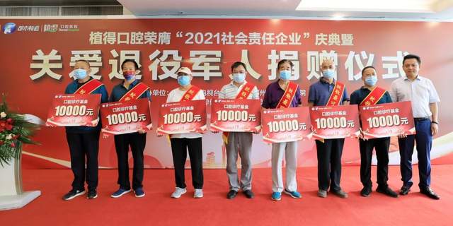 为助力退役军人口腔健康,2022年7月30日,植得口腔荣膺“2021社会责任企业”暨关爱退役军人捐赠仪式举行。此次捐赠中,郑州植得口腔医院向河南省慈善总会捐赠100万,设立关爱退役军人口腔诊疗基金,可用于口腔保健、口腔诊疗、牙齿修复、牙齿种植等口腔项目。