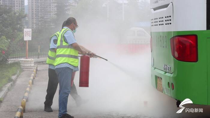 齐鲁网·闪电新闻7月30日讯 日前,在威海公交集团环山路场站内,一场消防专项应急演练正在紧张有序进行。9时许,一辆辆公交车整齐排开,工作人员模拟火灾的浓浓烟雾,现场传出指挥声:“停车场一充电车辆发生自燃,请驾驶员驾驶车辆疏散,注意安全。”听到警报后,办公楼内的驾驶员迅速集结,将停放的其他车辆有序驶离,并进行干粉灭火器实操演练。各部门人员按照实战标准,紧密配合,圆满完成演练。
