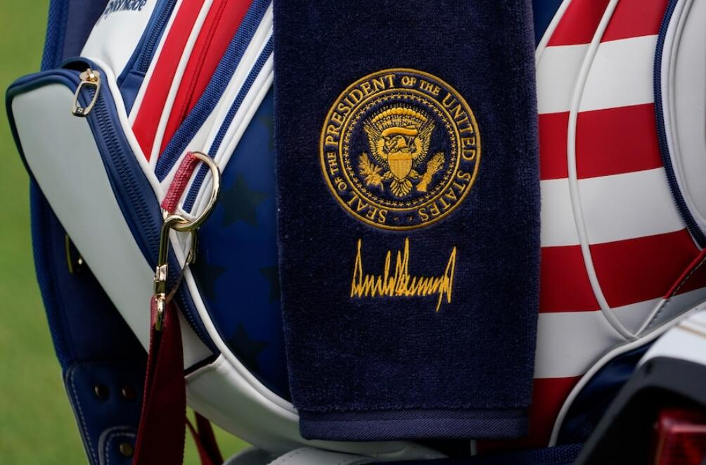 报道称,特朗普28日在上述球场为利夫高尔夫锦标赛举办活动的照片显示,包括高尔夫球车在内的多项用品上都有印有美国总统徽章。