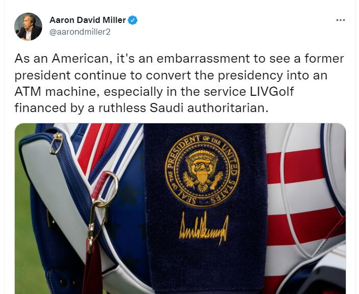 上述事件曝光后在社交媒体推特上引起了大量讨论,网友们纷纷对前总统特朗普可能违反法律的行为提出批评。美国前外交官亚伦·大卫·米勒写道:“作为一个美国人,看到一位前总统继续将总统职位变成自动取款机是一件令人羞愧的事……”↓