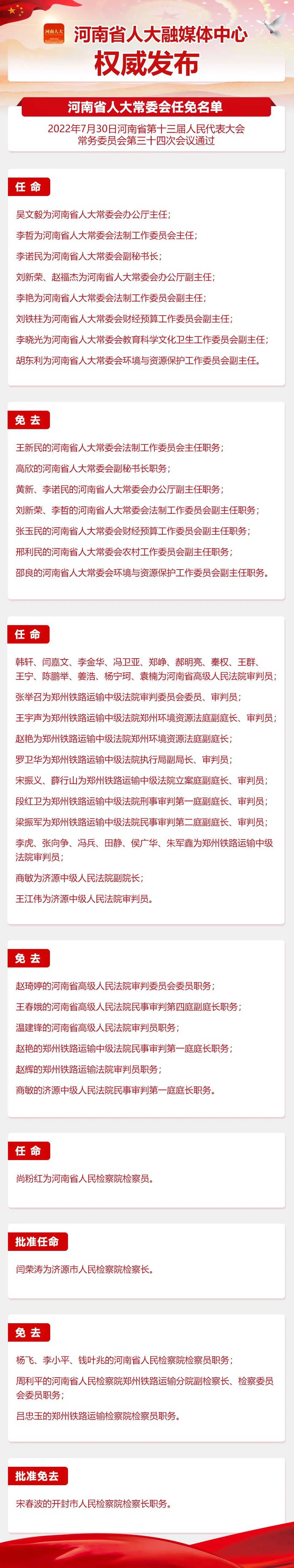 河南省十三届人大常委会第三十四次会议任免名单来了