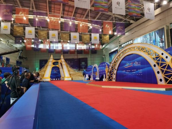 红毯的起点采用了桥的造型,并刻满了历届百花奖举办的年份和地点。当天下午5时10分,红毯仪式开始。群星云集、星光熠熠,随着音乐响起,嘉宾们由桥梁造型的毯头出发,穿“桥”而过走上红毯。签名亮相区为金银双色的拱形桥身造型,蓝色背景呈弧线如波浪滔滔,让人感受到江城桥文化的魅力。