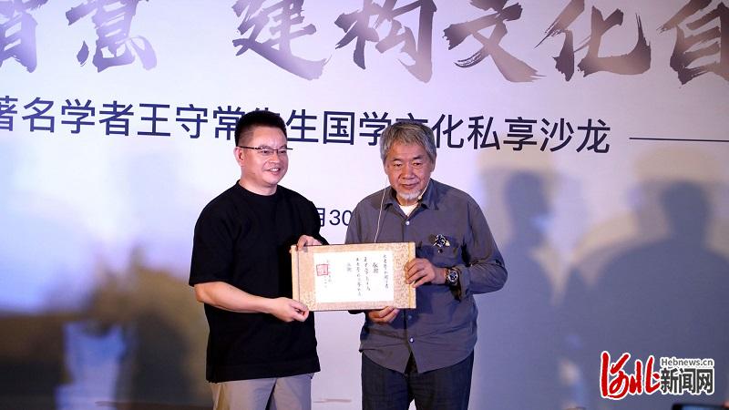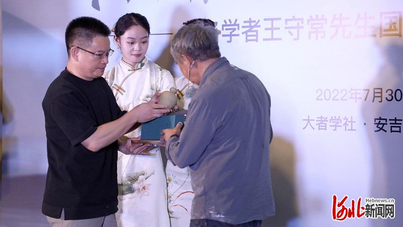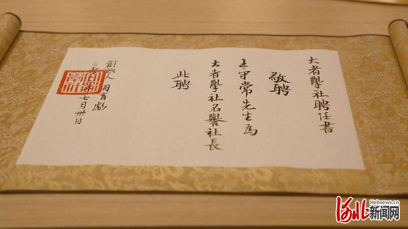 随后,大者学社创始人周育彪先生上台,为王守常先生颁授聘任书,正式聘任王守常先生为大者学社名誉社长,未来大者学社将在王守常先生精神指引下,传承国学经典,弘扬中华优秀传统文化。