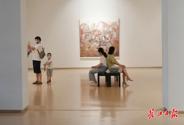 在采访中,记者发现不少前来参加开幕式的市民都给自己规划了“下一站”。闽文龙是武汉市艺术学校的教师,是此次参展者之一,他觉得有这样的机会和艺术家交流很难得。“开幕式后,我准备去图书馆看书,享受恬静的慢生活。”家住附近的市民胡功贵带着5岁的孩子来看展,他说,看完展后他准备带着孩子在公园遛弯,吹湖风闻荷香,“这一天就完美了!”